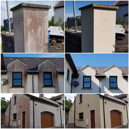 Softwashing kills and removes Green and Red Algae, Moss, Fungi, Lichen, Mildew & Bacteria from K Rend, Weber, Cement renders, Pebbledash and many more surfaces.