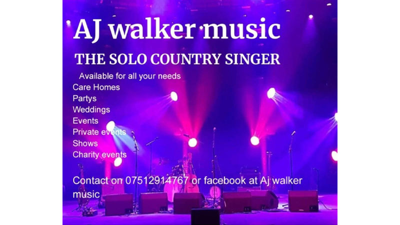AJ Walker is a talented solo country singer with a heartwarming voice and a passion for connecting with audiences of all ages. Known for his soulful renditions and engaging performances, AJ brings joy and entertainment to care homes, weddings, parties, private shows, and a variety of events. His repertoire spans classic country hits and modern favorites, ensuring a memorable experience tailored to each occasion. Beyond his regular performances, AJ is dedicated to giving back, frequently lending his voice to charity events and community initiatives. With his warm stage presence and authentic sound, AJ Walker Music is the perfect choice to make any gathering truly special.