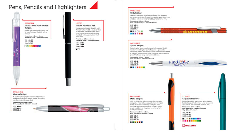 Items include silicone wrist bands, power banks, memory sticks, bluetooth speakers, pens, highlighters, pencils, colouring pencils, pencil cases, rulers, scale rulers, erasers, keyrings, hygiene keyrings, desk and wall calendars, diaries, mugs, stainless steel thermal travel mugs, sports water bottles, golf towels, golf balls, tees, sets, pitch forks, golf umbrellas, conference folders, ring binders, cigarette lighters, vinyl window stickers, adhesive paper labels, lanyards, desk & wall clocks, name badges, button badges, metal lapel pin badges, balloons, cotton tote shopping bag, polypropylene, jute, polythene, paper, laminated shopping bags, gift bags, sports bags, drawstring bags, mudflaps, calculators, mouse mats, USB flash drives, clothing, sweatshirts, hoodies, jackets, t-shirts, polo-shirts, work shirts, corporate workwear, hi-vis vests, hi-vis clothing, sticky notes, desk pads, note pads, crystal awards, caps, hats, beanies, fridge magnets, ice scrapers, notebooks, keyring torches, tape measures, USB memory sticks, phone accessories, computer accessories, wallets, stress products, air fresheners, backpacks, document wallets, footballs, sunglasses , tablecloths, travel adapters, trolley coin keyrings, charging cables, chocolates, mints, jelly beans, confectionery, earphones, logo bugs, radiator keyrings, straws, webcam covers and much more.